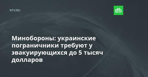 Украинские пограничники для беспрепятственного пересечения границы требуют с эвакуирующихся взятки до пяти тысяч долларов. Об этом сообщил глава Национального центра управления обороной РФ Михаил Мизинцев.