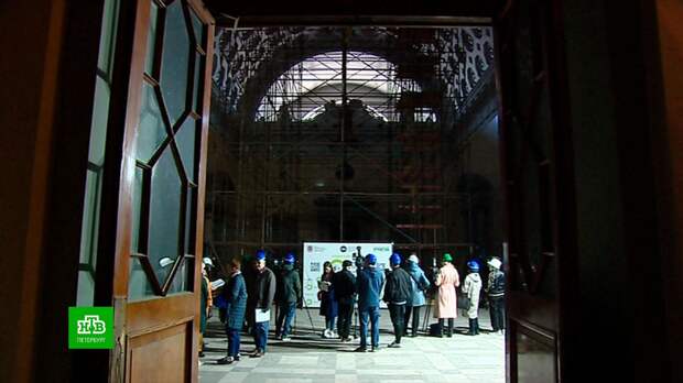 Участникам проекта «Открытый город» показали закрытое здание Биржи. Здесь продолжается масштабная реставрация.