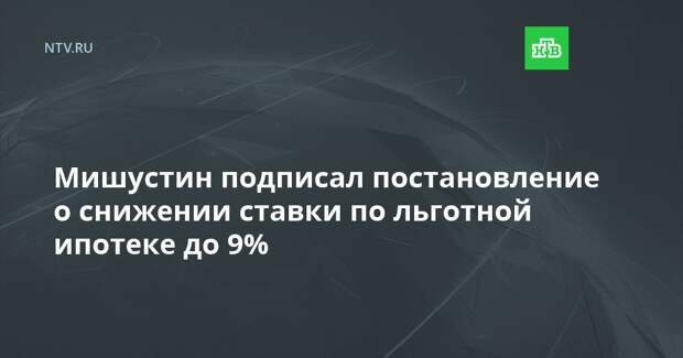 Премьер-министр России Михаил Мишустин подписал постановление о снижении ставки по льготной ипотеке с 12% до 9%, сообщается на сайте кабмина.