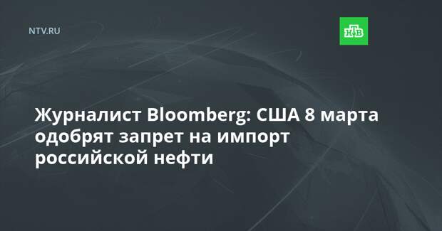 Власти США 8 марта одобрят запрет на импорт российской нефти. Об этом со ссылкой на источник сообщил журналист издания Bloomberg.